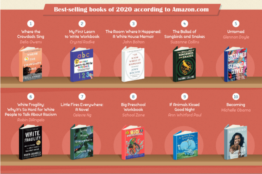 Fotografia ediției: Cele mai vândute cărți ale anului 2020 de către Amazon. Sursa: Global English Editing