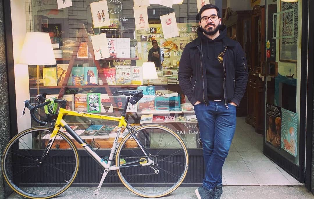 Fotografia ediției: Librarul din Torino care își expediază cărțile cu bicicleta, devenit protagonistul unei reclame Google. Sursa: ActuaLitte.