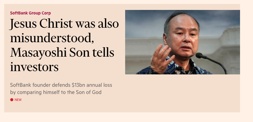 Fotografia dimineții este o captura din FT cu declarația CEO-ului SoftBank: