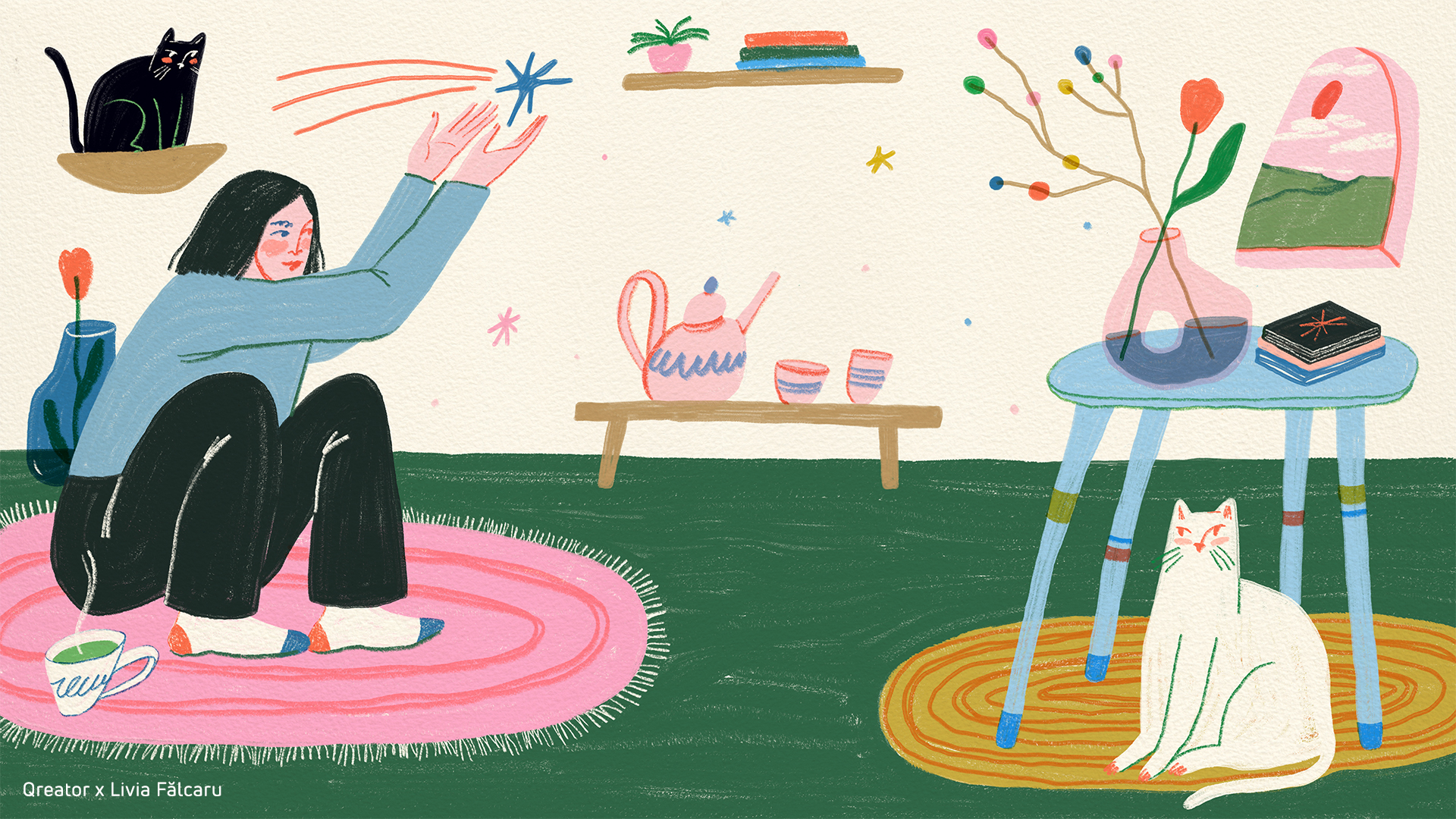 Fotografia dimineții – Ilustrație realizată de Livia Fălcaru, parte din proiectul „Acasă la Qreatori”: