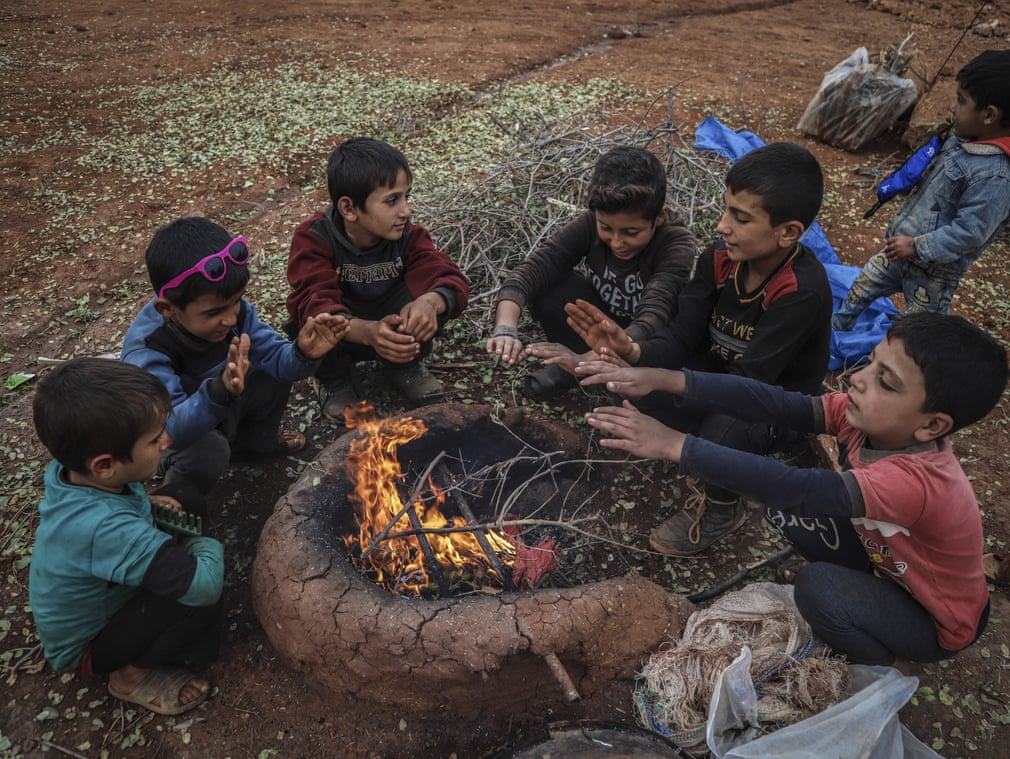 Fotografia dimineții – Copiii se încălzesc în jurul unui foc, într-o tabără de refugiați din Idlib, Siria. Muhammed Abdullah/Anadolu/Getty Images: