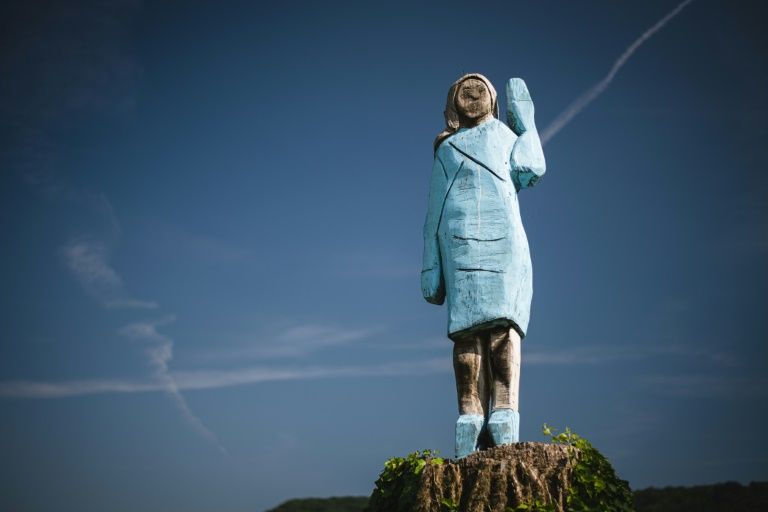 Fotografia serii – O statuie din lemn a primei doamne a Statelor Unite, Melania Trump, a fost ridicată în apropiere de orașul său natal din Slovenia. AFP Photo/Jure Makovec:
