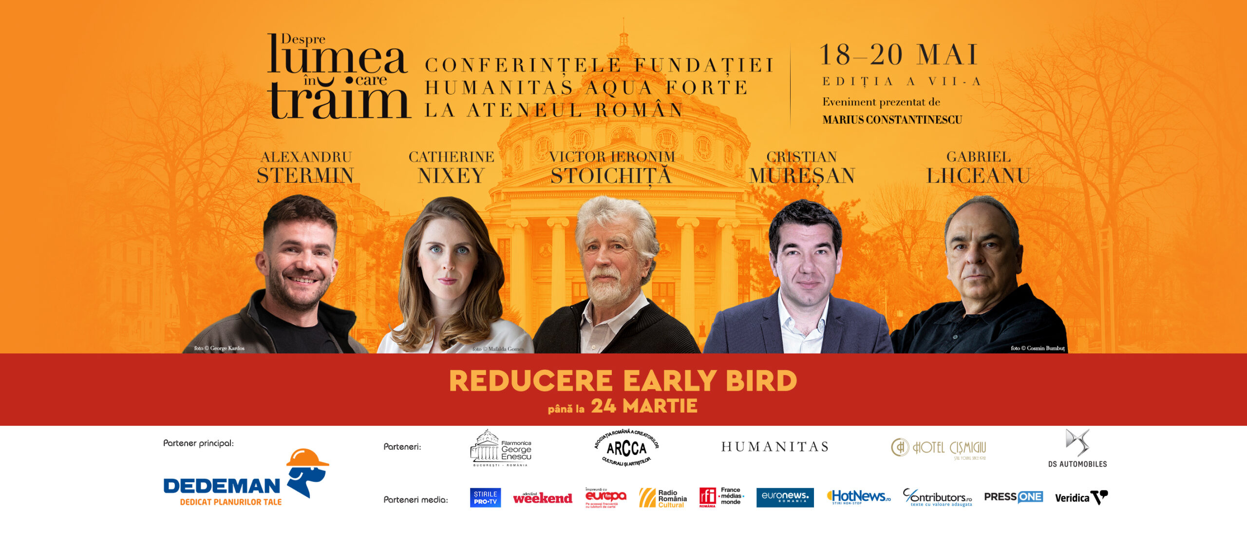 1. A fost anunțat programul celei de-a șasea ediții a festivalului de conferințe „Despre lumea în care trăim“, care va avea loc între 18 și 20 mai, pe scena Ateneului Român. Invitați vor fi Alexandru N. Stermin, Catherine Nixey, Victor Ieronim Stoichiță, Cristian Mureșan, Gabriel Liiceanu, care vor dialoga cu Radu Paraschivescu, Cătălin Striblea, Mihaela Dedeoglu și Horia-Roman Patapievici. (Link)