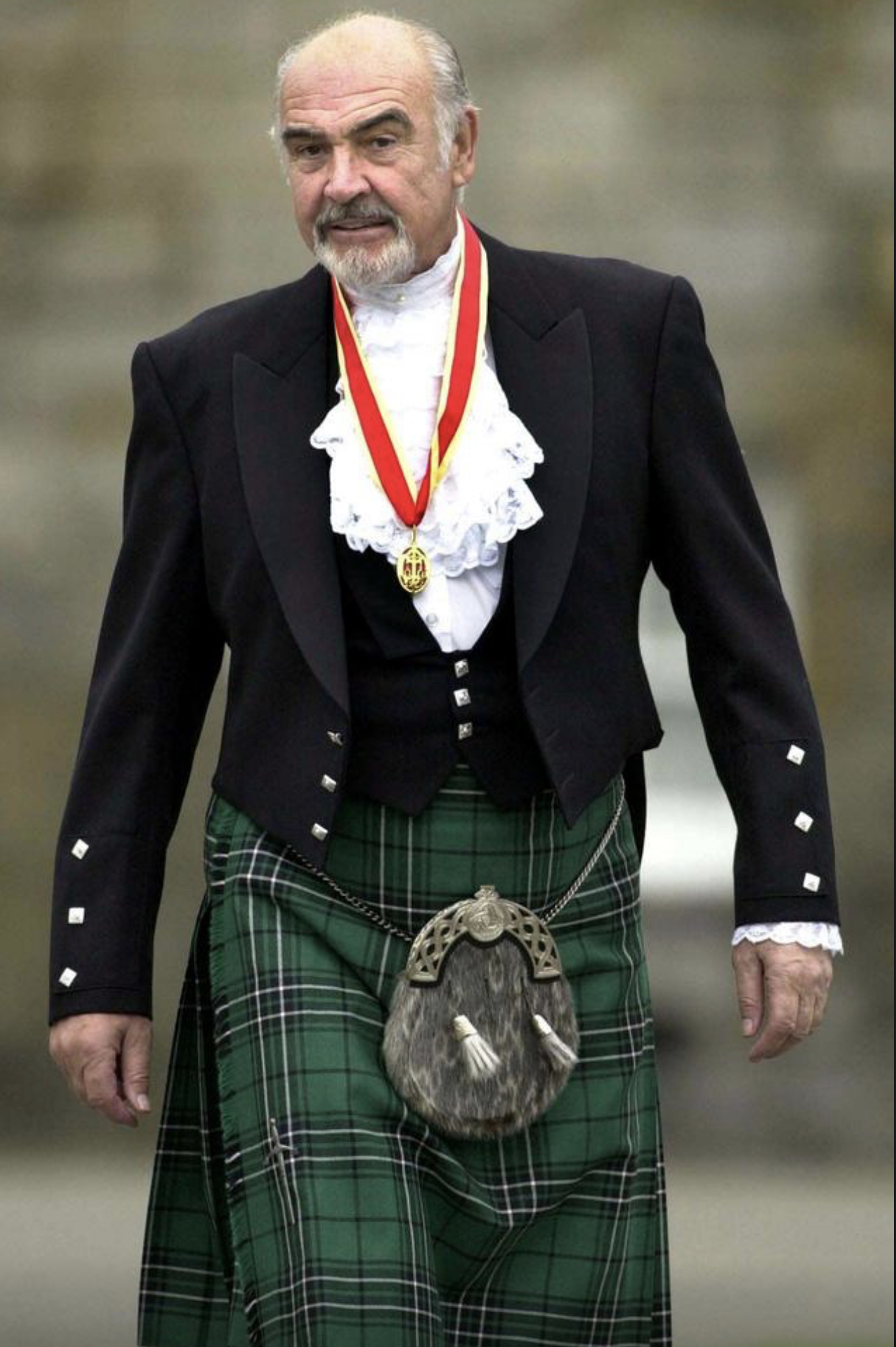Fotografia dimineții – Sir Sean Connery îmbracat în costum tradițional scoțian pentru ceremonia în care a fost făcut cavaler de regina Elisabeta, acum 20 de ani: