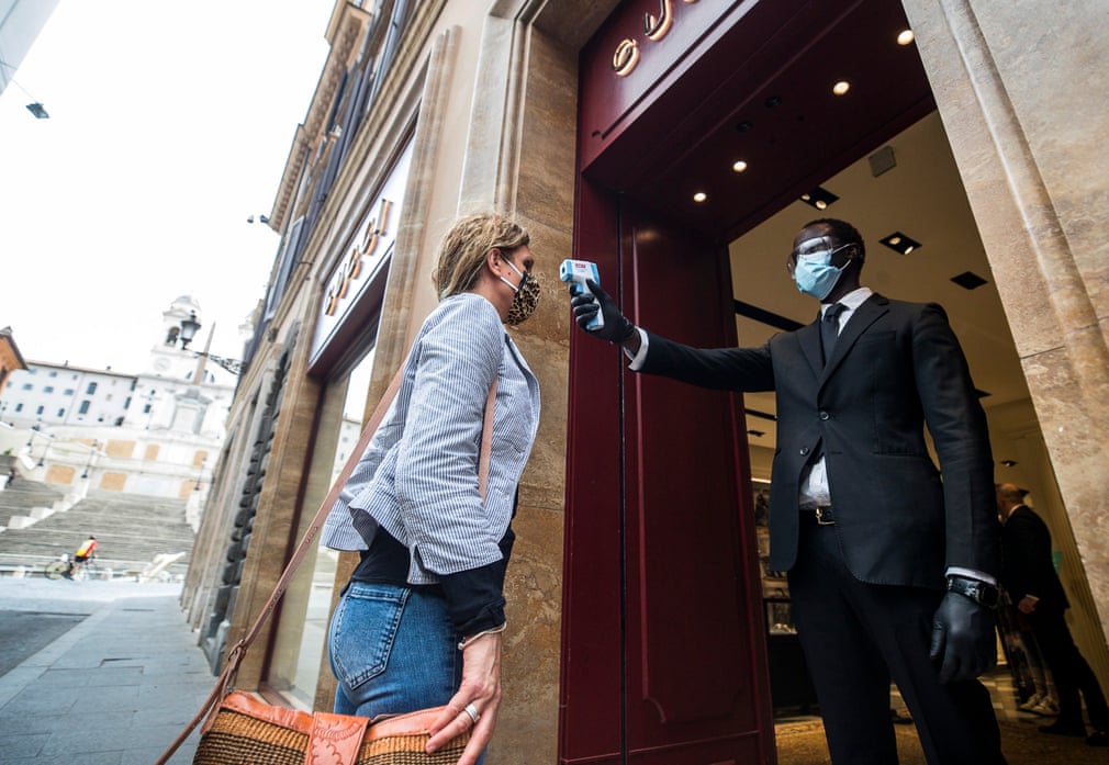 Fotografia serii – Unei vizitatoare îi este măsura temperatura la intrarea într-un magazin Gucci din capitala Italiei. Angelo Carconi/EPA: