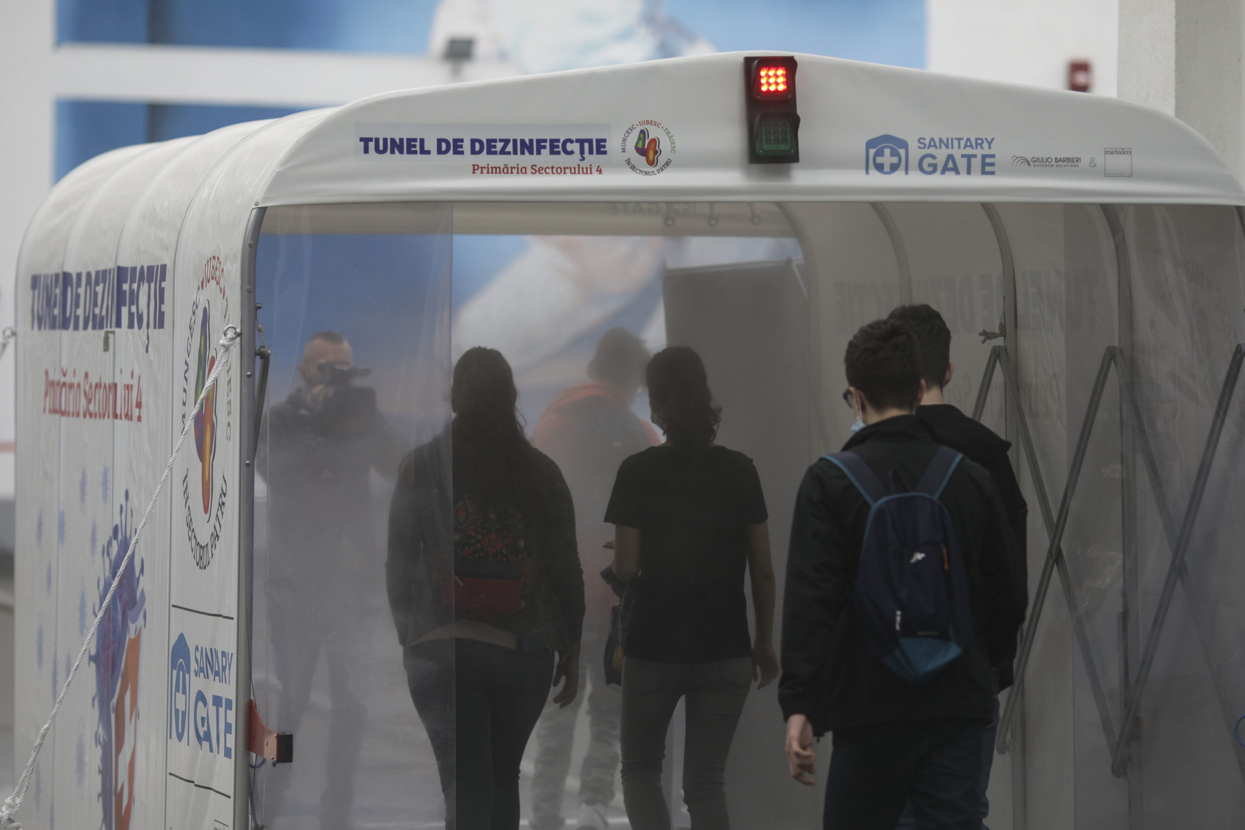Fotografia dimineții vine de la școală 194 din București, unde elevii care au dat proba de Limba română a Evaluării Naţionale au trecut printr-un tunel de dezinfectare. Octav Ganea, Inquam Photos: