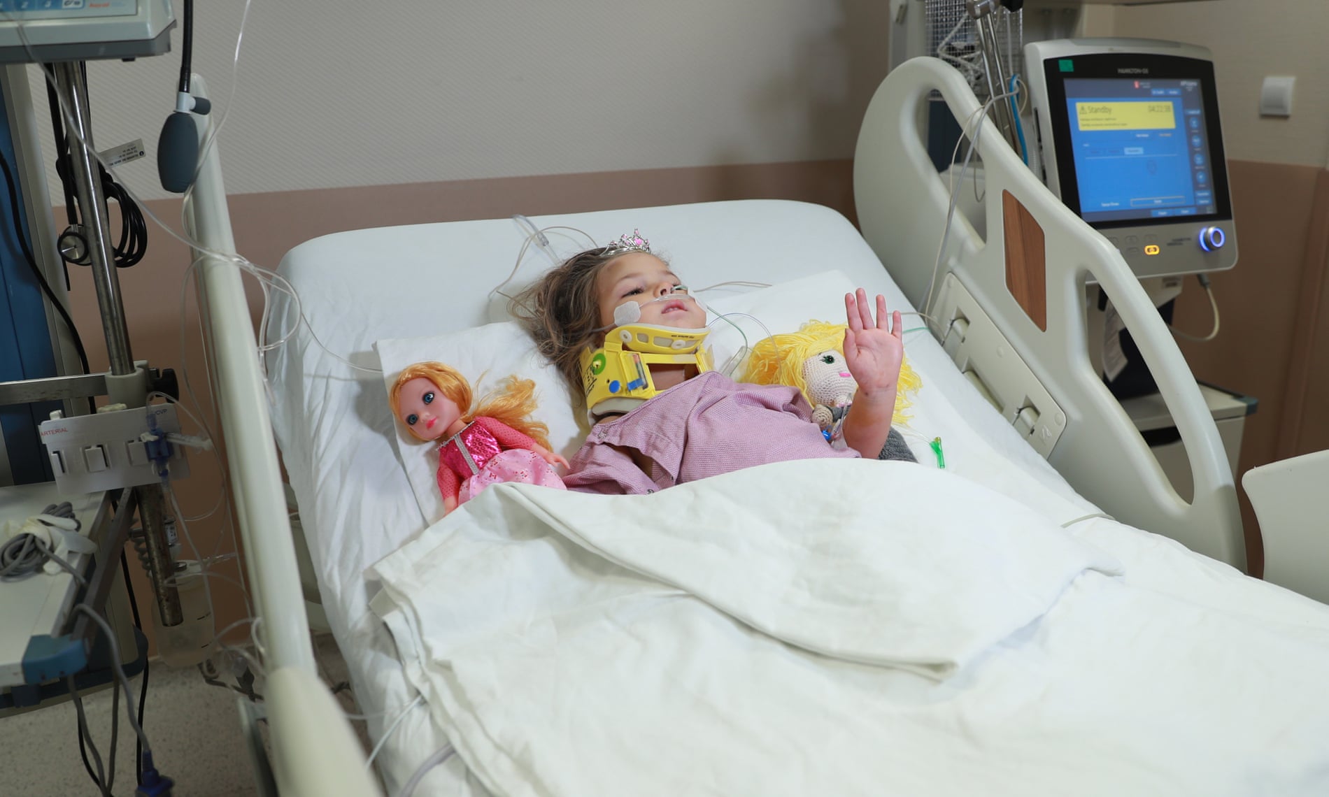 Fotografia dimineții – Ayda Gezgin, fetiță de 4 ani salvată după ce a stat 91 de ore sub dărâmături, în urma cutremurului din Turcia, se recuperează în spital. Anadolu/Getty: