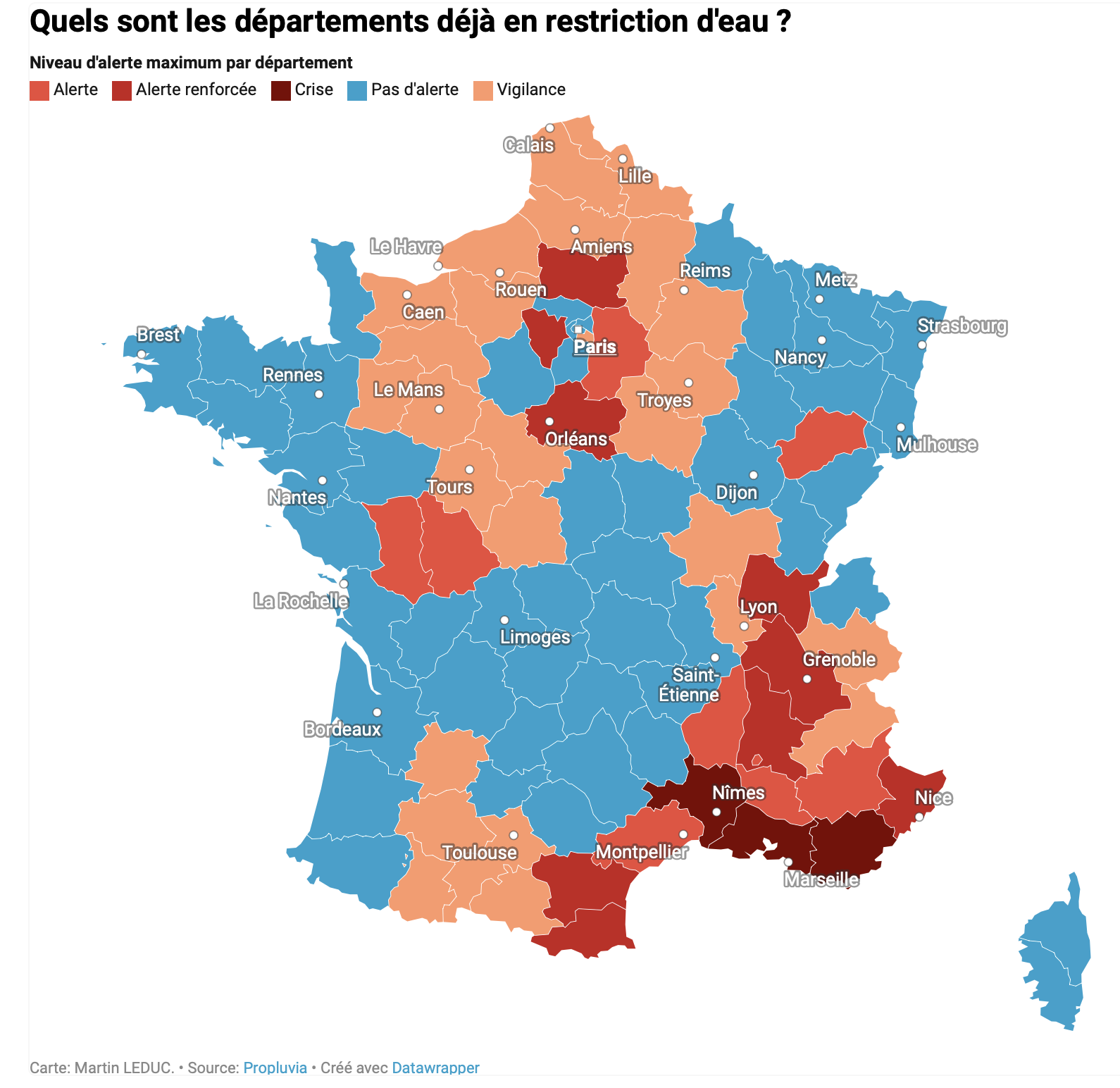 Poza ediției : Departamente din Franța supuse restricțiilor de apă. Sursa.