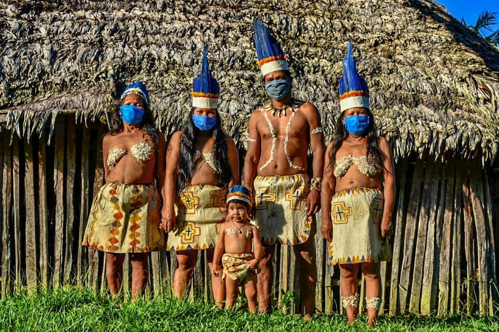 Fotografia serii – Witoto, populația indigenă din sud estul Columbiei, purtând măști de protecție pentru a se proteja împotriva noului virus. Tatiana de Nevo/AFP/Getty Images: