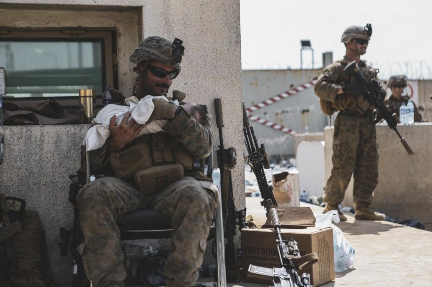 Fotografia dimineții – Un soldat american având grija de un bebeluș afgan pe aeroportul din Kabul: