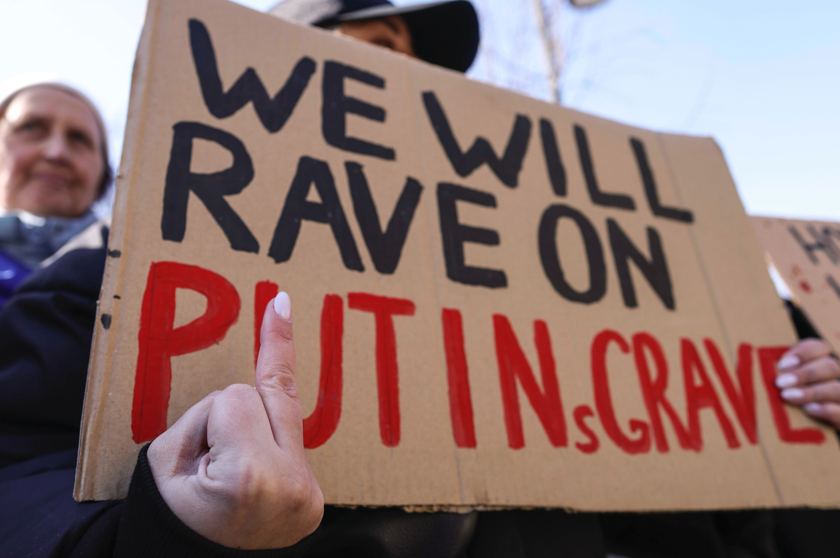 Fotografia dimineții – Mai mulţi ucraineni refugiaţi în România au organizat, duminică, la Bucureşti, un eveniment prin care au marcat trei ani de la debutul invaziei Rusiei. Oamenii au cerut pace şi au pichetat Ambasada Rusiei. Octav Ganea, Inquam Photos:
