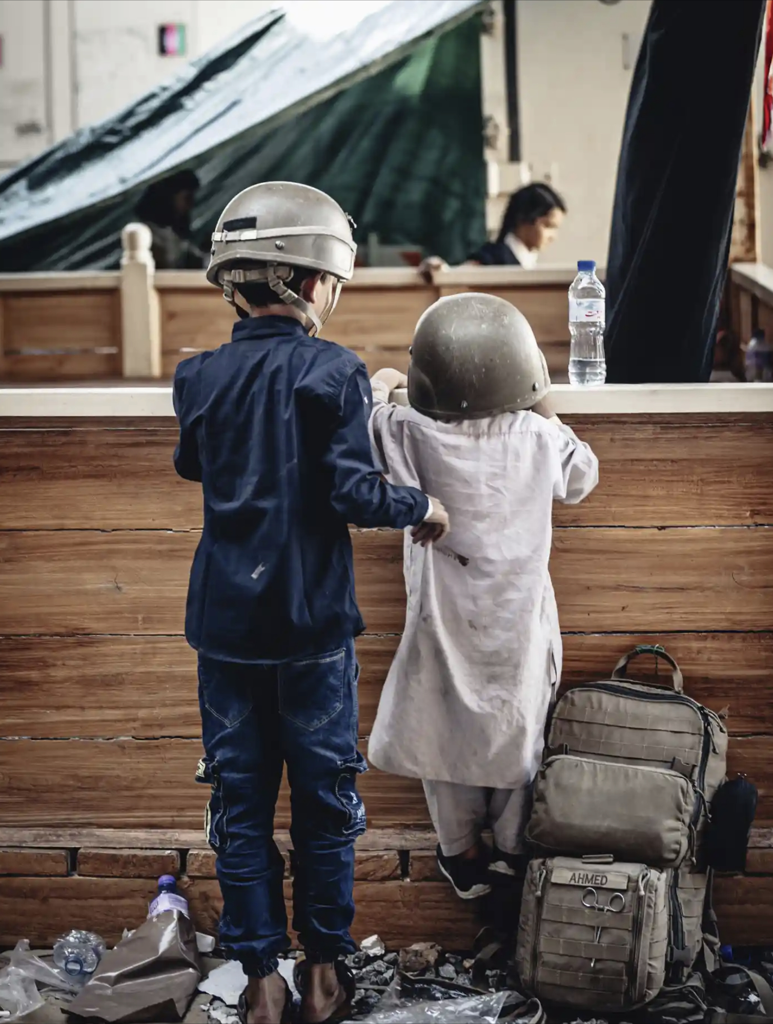 Fotografia dimineții – Doi copii așteaptă evacuarea pe aeroportul din Kabul. Gunnery Sgt Melissa Marnell/AP: