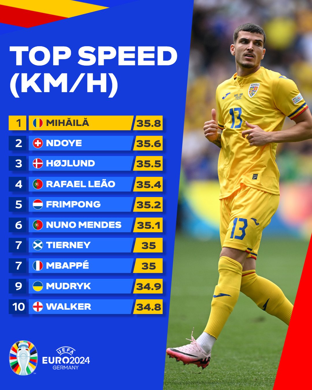 Graficul dimineții – Jucătorul român Valentin Mihăilă a fost înregistrat cu cea mai mare viteză de până acum la Euro2024:
