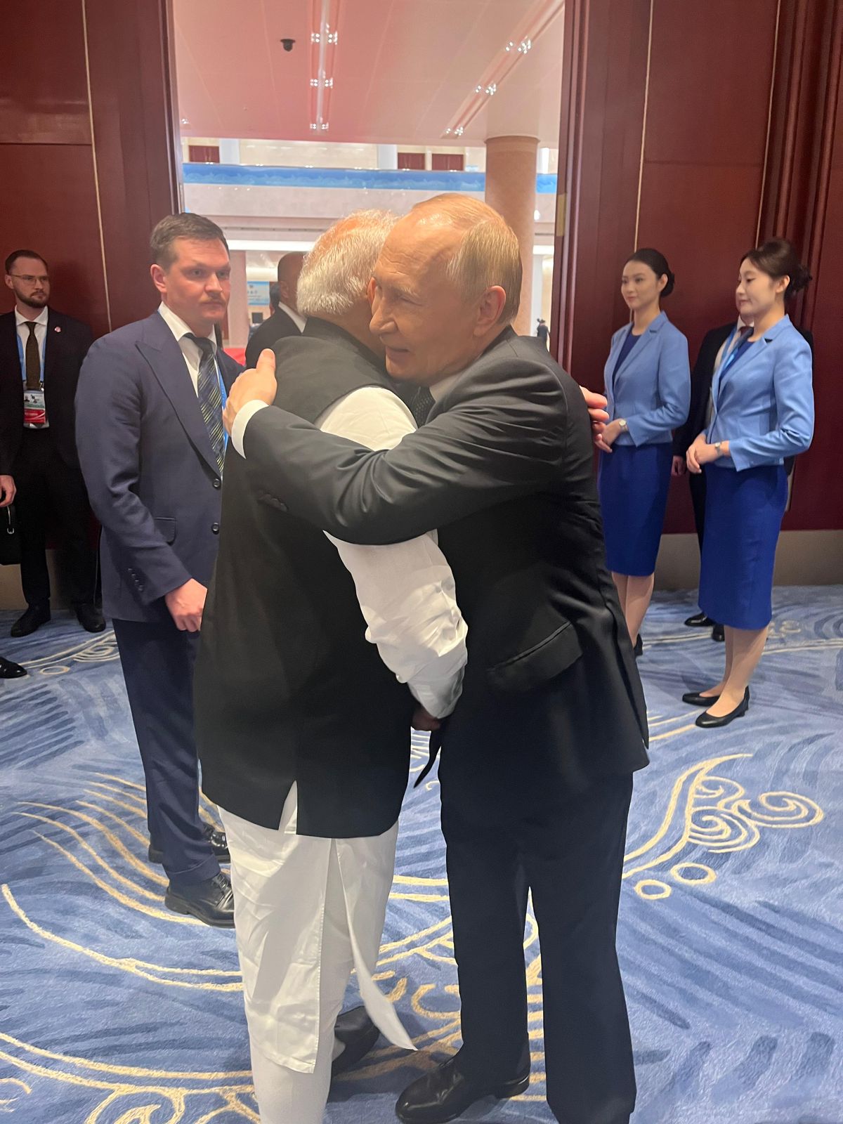 Fotografia dimineții-=Îmbrățișarea dintre premierul indian Narendra Modi și președintele rus Vladimir Putin, amândoi aflându-se la summitul organizat de președintele Chinei: