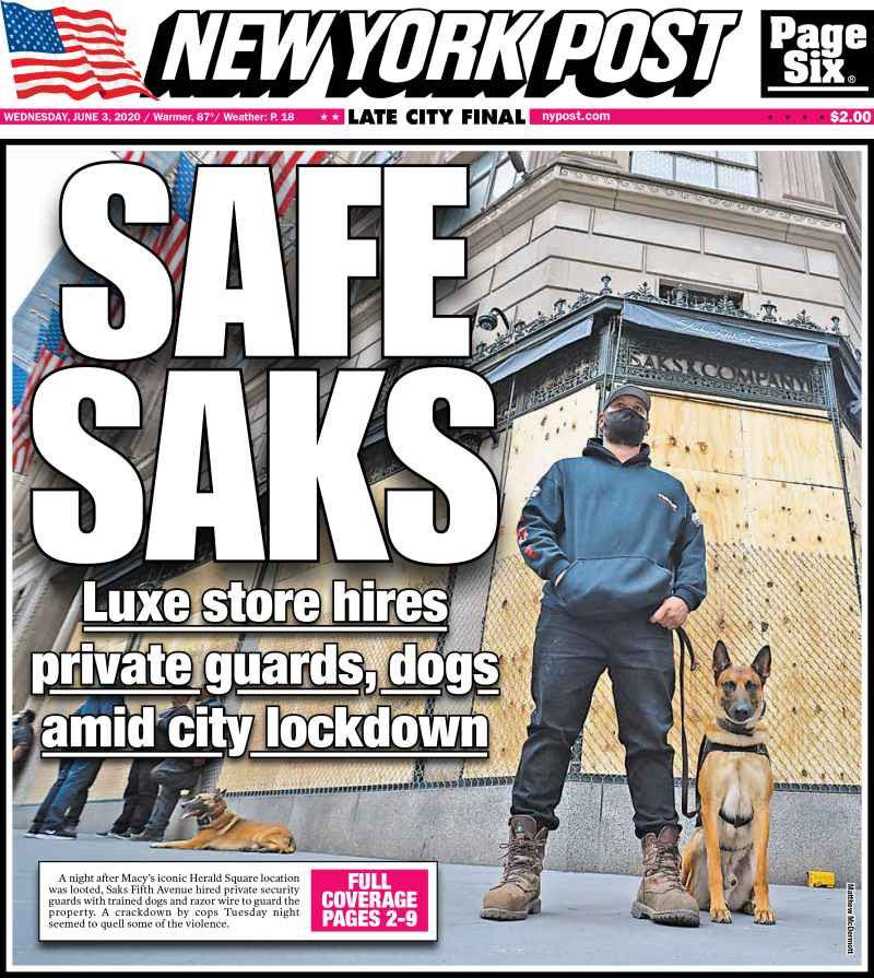 Fotografia serii – Prima pagină a cotidianului New York Post, ediția de azi: