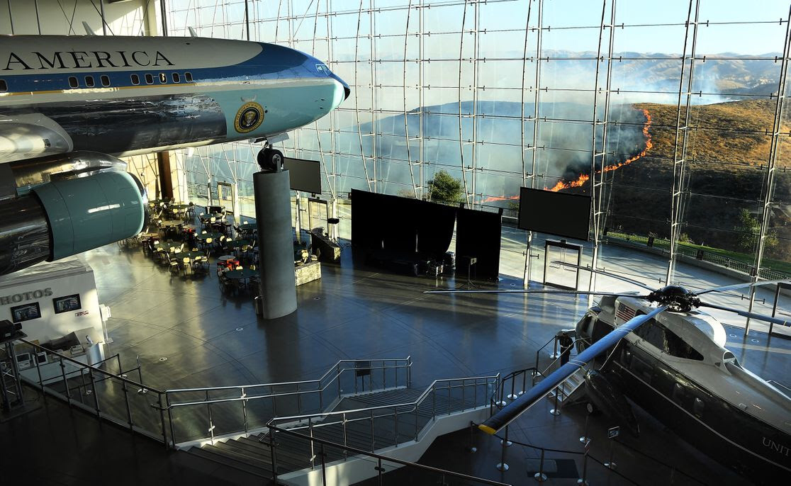 Fotografia dimineții – Air Force One-ul folosit de Ronald Reagan in fata incendiilor din Simi Valley, California. Wally Skalij/Los Angeles Times via Getty Images: