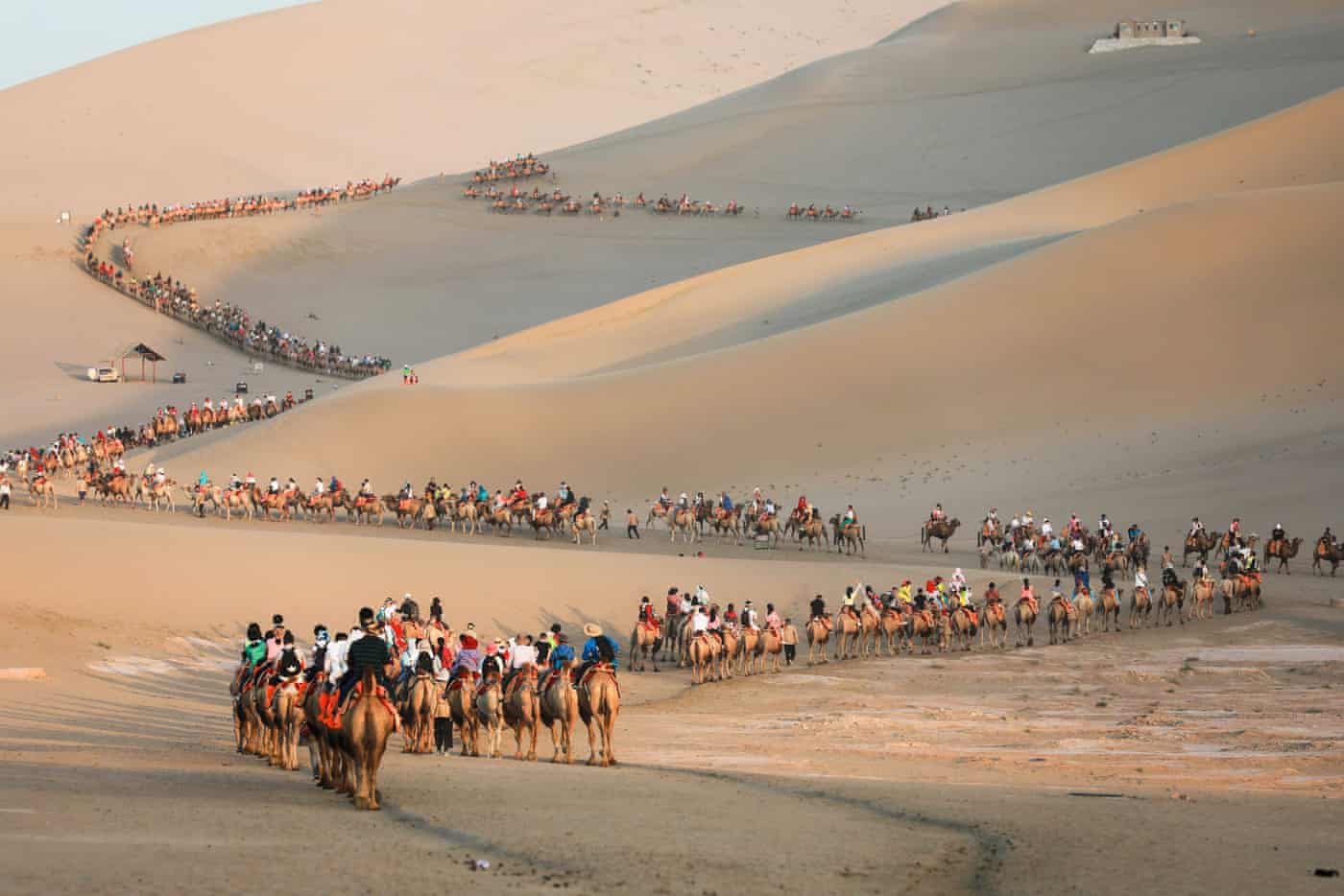 Fotografia dimineții – Turiști pe cămile în deșertul Dunhuang, din China. AFP/Getty Images: