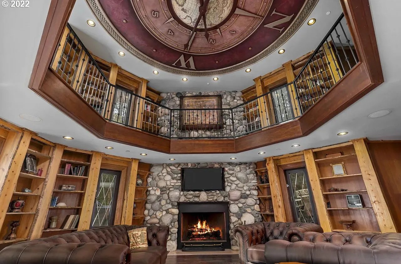 Fotografia ediției: O casă în stil castel din Portland, Oregon, deține o bibliotecă circulară pe două etaje, într-un turn al acesteia, care are pe tavan „cel mai mare ceas de pe Coasta de Vest”. Casa este de vânzare pentru 5 milioane de dolari. Sursă fotografie: BookRiot.