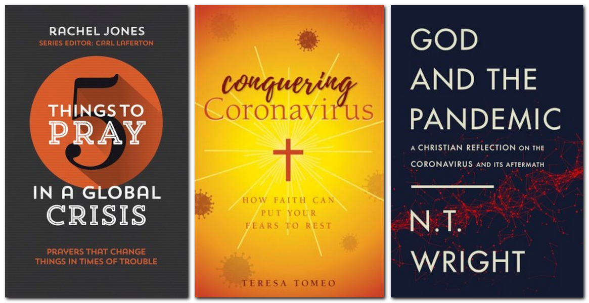 Fotografia ediției: Vânzările cărților religioase având ca subiect pandemia au crescut în această perioadă. Colaj din trei astfel de cărți apărute în aceste luni, sursa: Publishers Weekly.