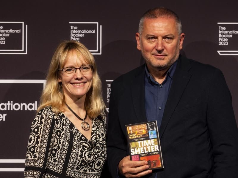 Fotografia ediției: Gheorghi Gospodinov și Angela Rodel, câștigătorii International Booker Prize 2023. Sursa: Bookerprizes.com.