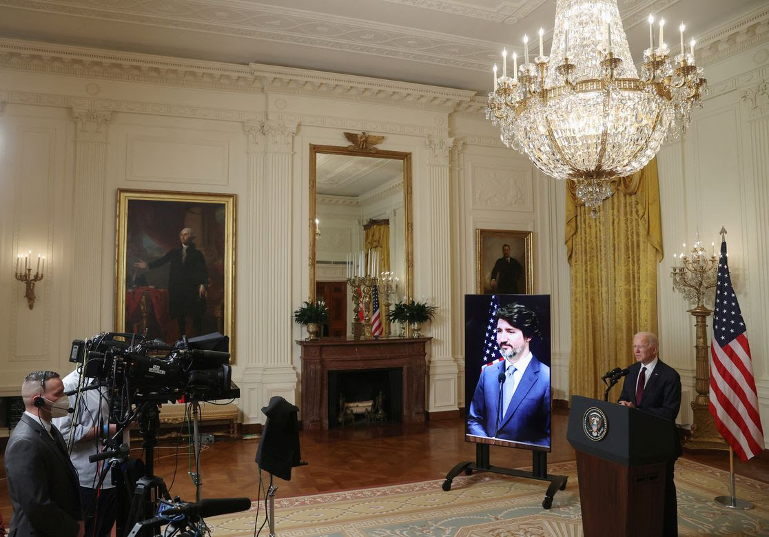 Fotografia serii vine de la conferința video in care președintele SUA Joe Biden a discutat cu premierul Canadei, Justin Trudeau. Jonathan Ernst/Reuters: