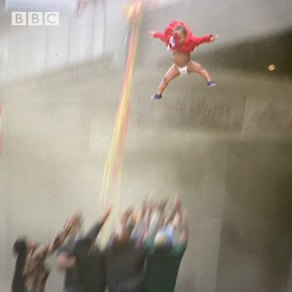 Fotografia dimineții vine din Africa de Sud unde un copil a fost prins după ce a fost aruncat dintr-o clădire cuprinsă de un incendiu. Mama și copilul sunt bine: