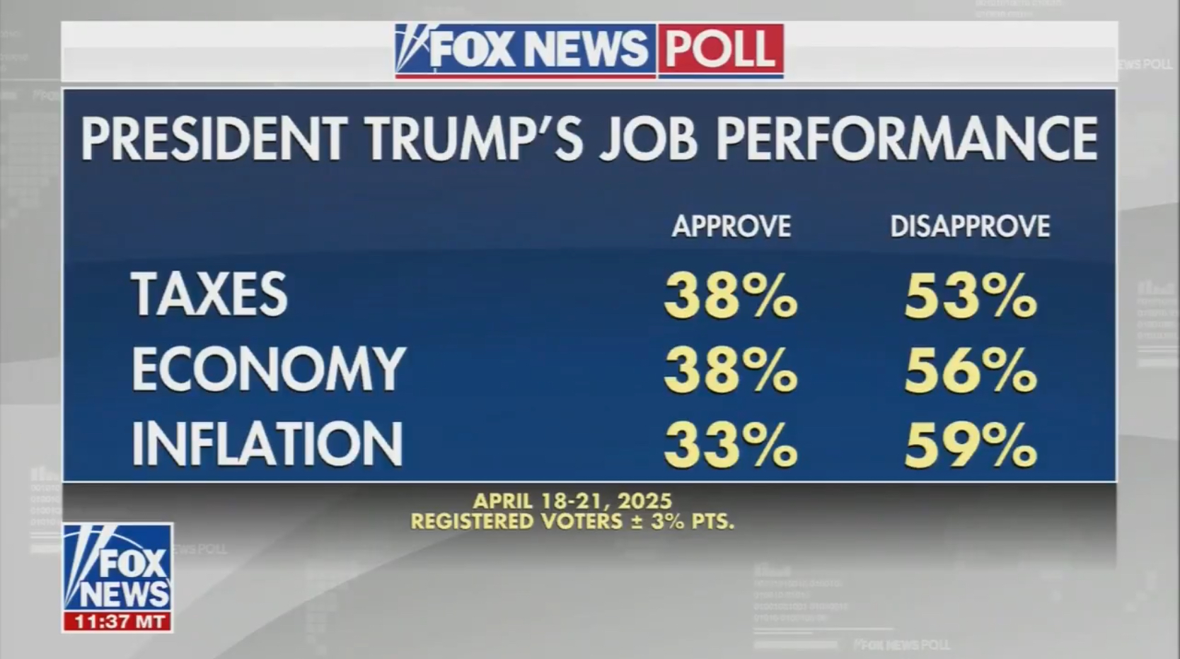 Fotografia dimineții – Performanța președintelui Donald Trump în ceea ce privește taxele, economia și inflația, așa cum a rezultat dintr-un sondaj FoxNews: