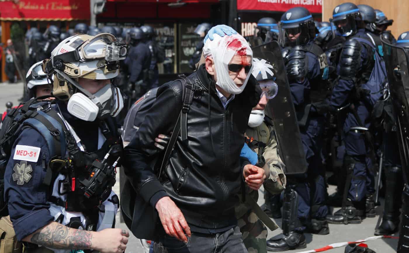 Fotografia dimineții – Medicii ajută un bărbat rănit în timpul protestelor de 1 Mai din Paris. François Mori/AP: