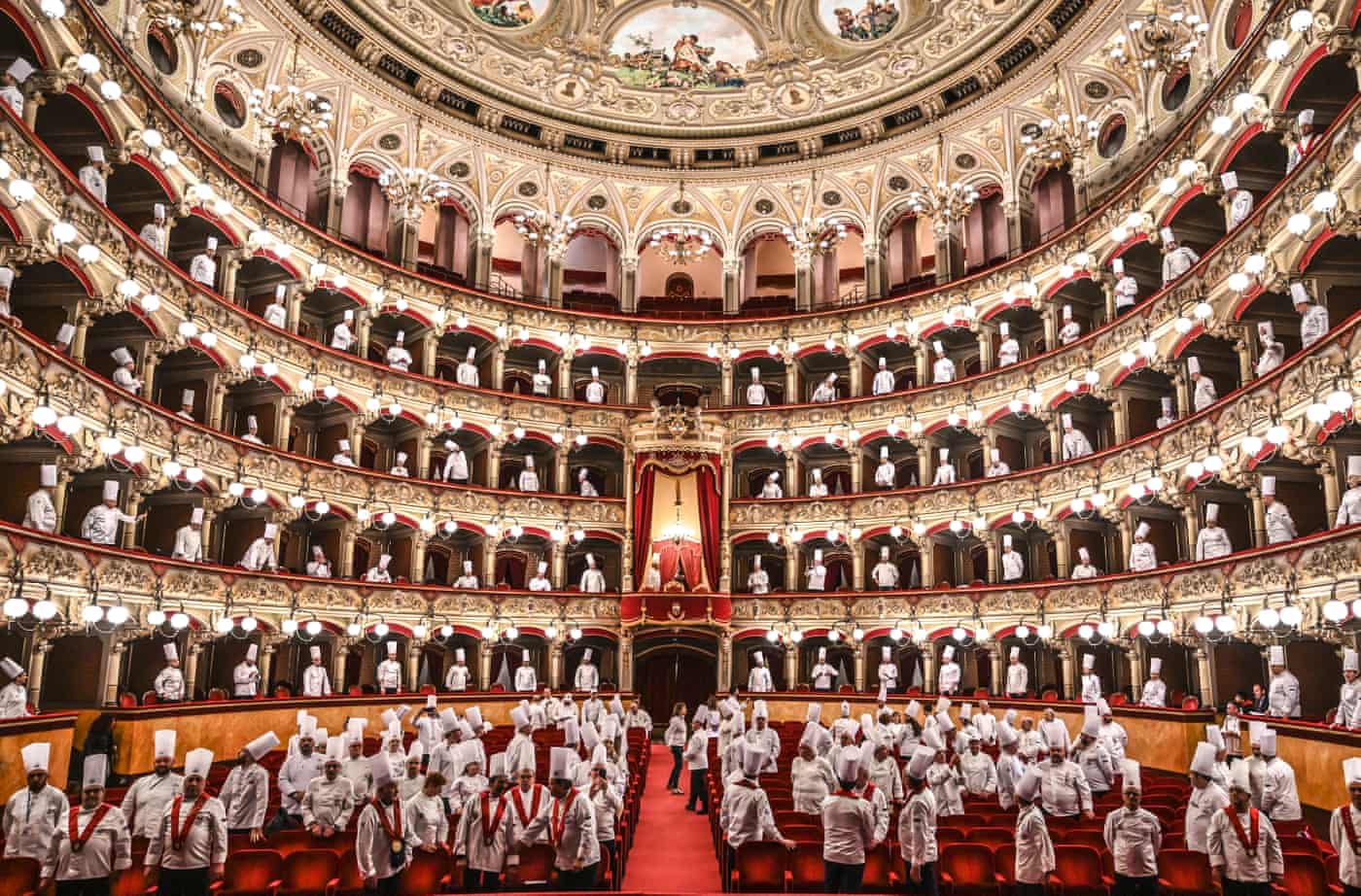 Fotografia dimineții – Bucătari adunați la teatrul Bellini din Catania pentru a celebra vinul și mâncarea. Fabrizio Villa/Getty Images:
