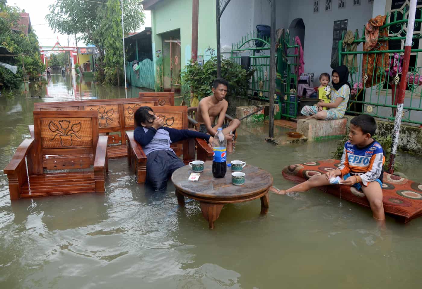 Fotografia dimineții – o familie stă afară după inundațiile din South Sulawesi, Indonesia, Șahrul Manda Tikupadang/Antară Foto/Reuters:
