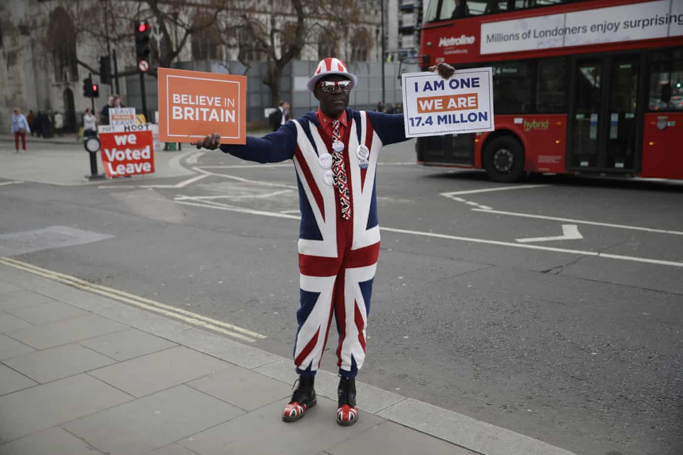 Fotografia dimineții – Un suporter pro Brexit în fața parlamentului britanic, Matt Dunham/AP: