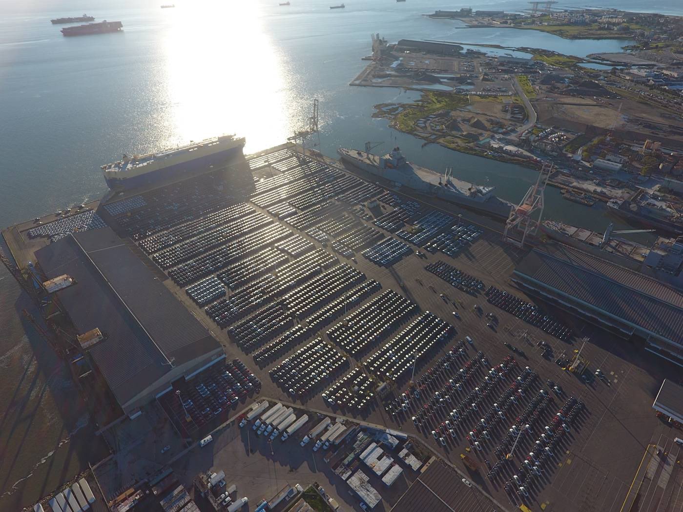 Fotografia dimineții – 4000 de mașini Tesla așteaptă în portul din San Francisco îmbarcarea pentru Europa, foto preluată de pe contul de Twitter a lui Elon Musk: