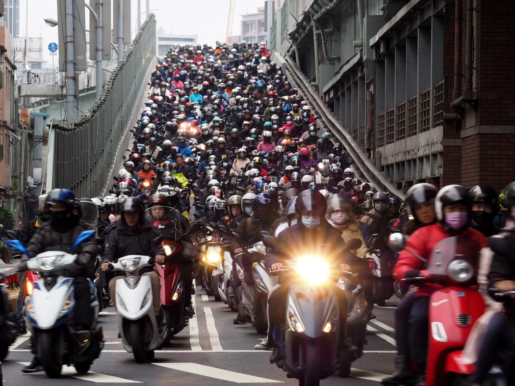 Fotografia serii – Motocicliști pe un pod din Taipei, Taiwan, David Chang/EPA: