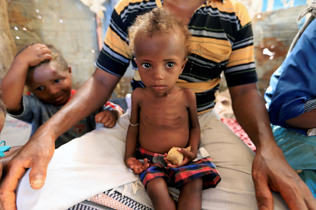 Fotografia serii – Hanaa Ahmad Ali Bahr, o fetiță malnutrită, stă pe picioarele tatălui său în Hodeidah, Yemen. Abduljabbar Zeyad/Reuters: