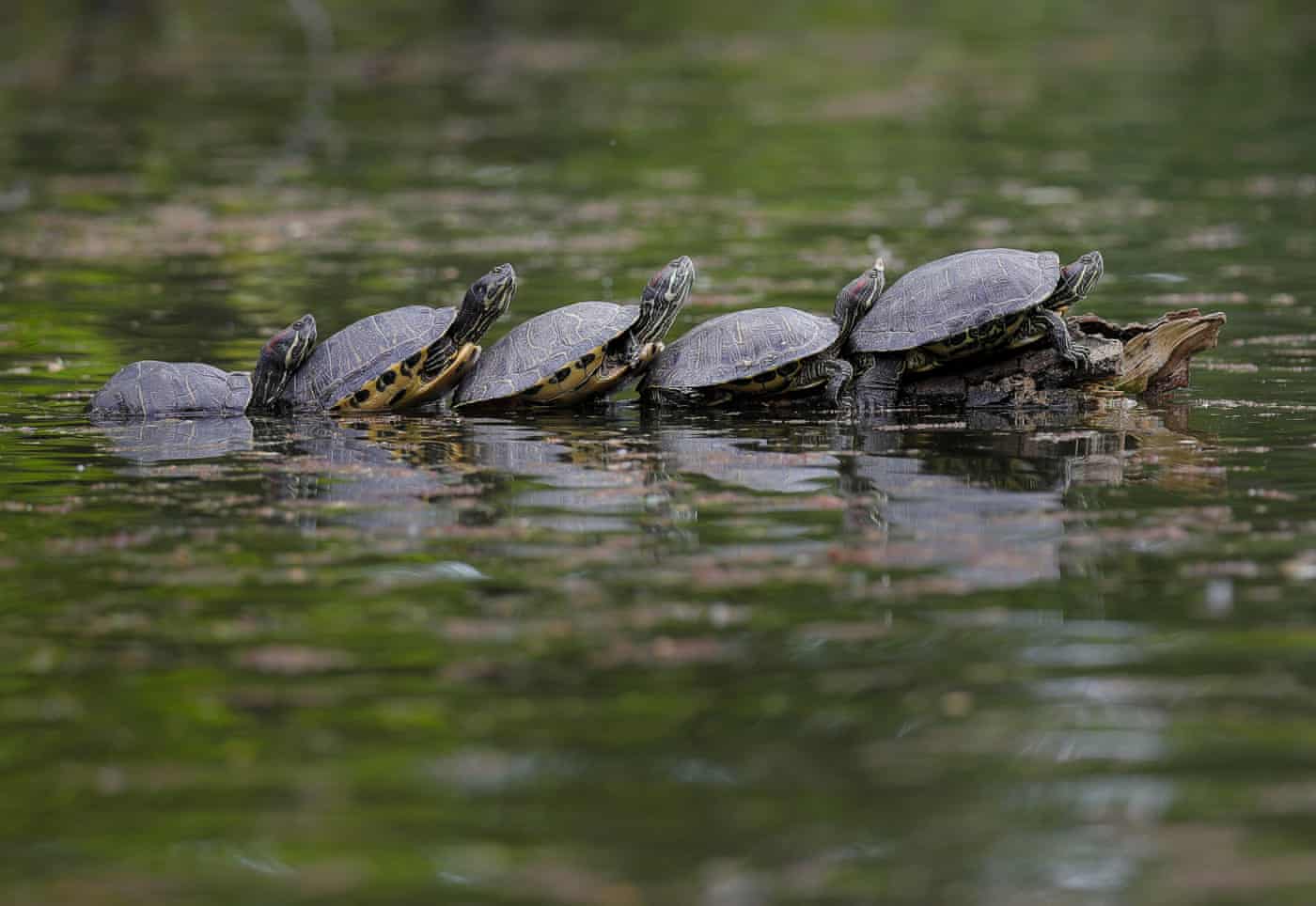 Fotografia serii – Mai multe țestoase se încălzesc la soare pe o buturugă într-unul din parcurile bucureștene. Vadim Ghirdă/AP: