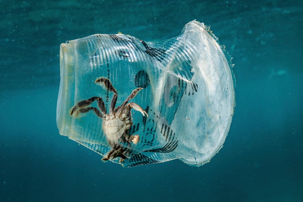 Fotografia serii – Un crab este blocat într-o pungă de plastic în Batangas, Filipine, Noel Guevara / Greenpeace/EPA: