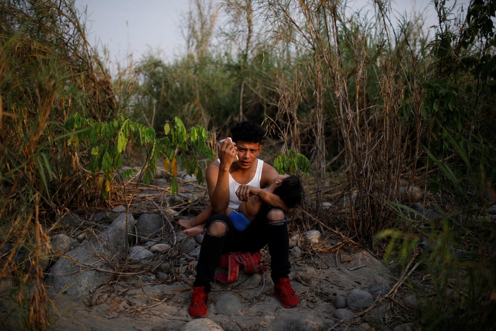Fotografia serii – Un migrant din America Centrală care vrea să ajungă în SUA vorbește la telefon cu familia sa. Huixtla, Mexic. José Cabezas/Reuters: