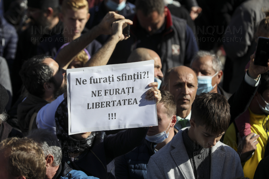 Fotografia serii vine de la protestul organizat de cei care doreau să ajungă să se închine la racla unde sunt depuse moaștele Sf Parascheva, în Iași. Inquam Photos / Liviu Chirică:
