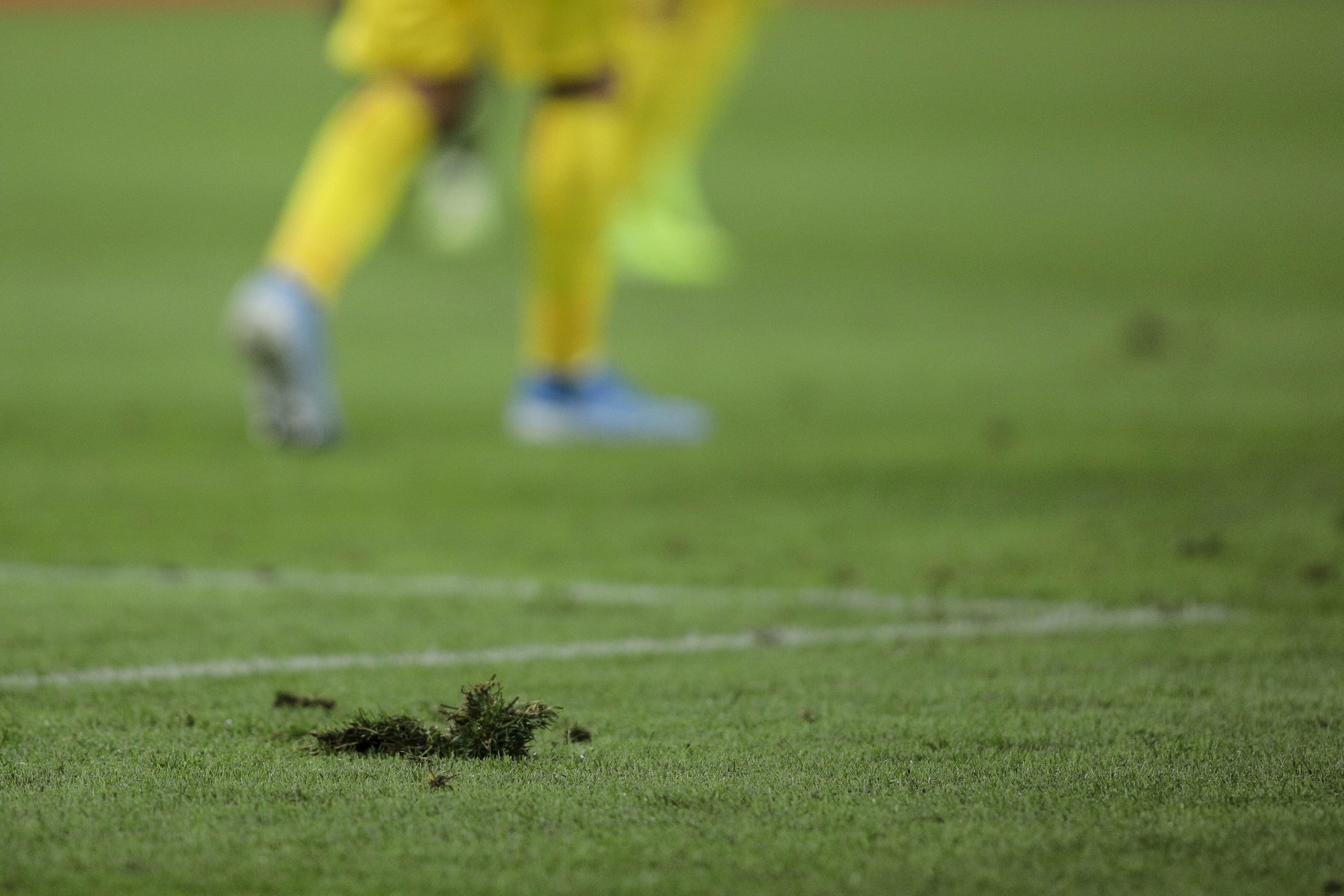 Fotografia dimineții – Gazonul de pe Național Arena, recent schimbat de Primăria Capitalei, nu a rezistat aseara, la meciul cu Spania. Octav Ganea, Inquam Photos: