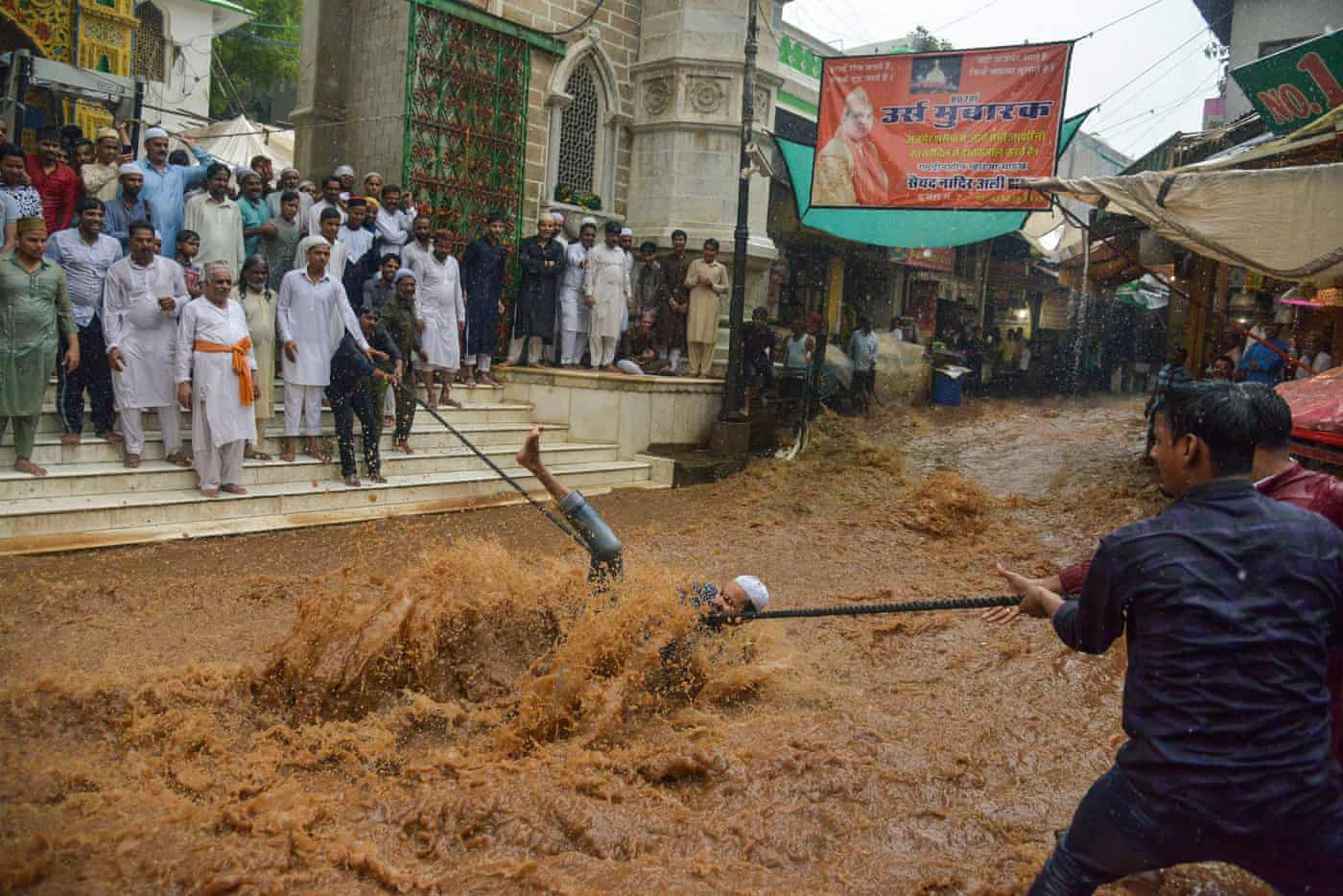 Fotografia serii – Un bărbat încearcă să se țină de frânghia întinsă pentru a-l salva. India, Shaukat Ahmed/AFP/Getty Images: