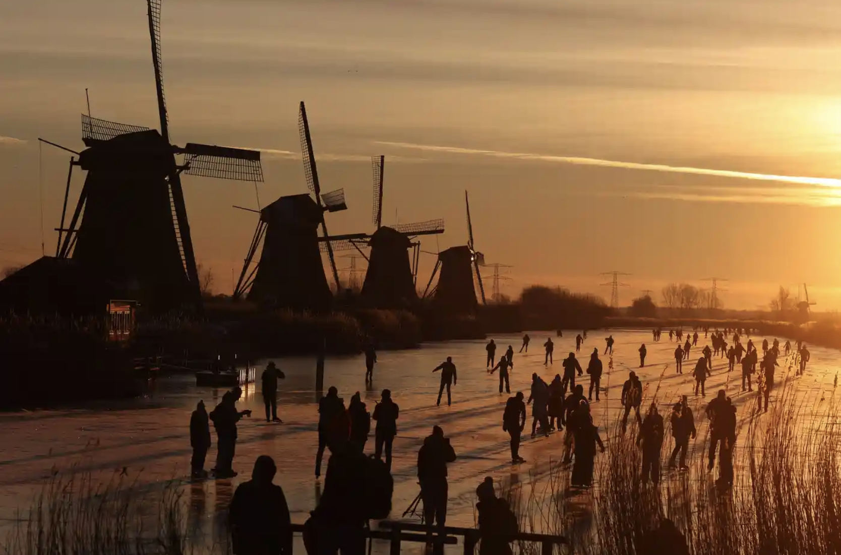 Fotografia serii vine din Olanda unde oamenii au ieșit să patineze pe canalele înghețate. Kenzo Tribouillard/AFP/Getty Images: