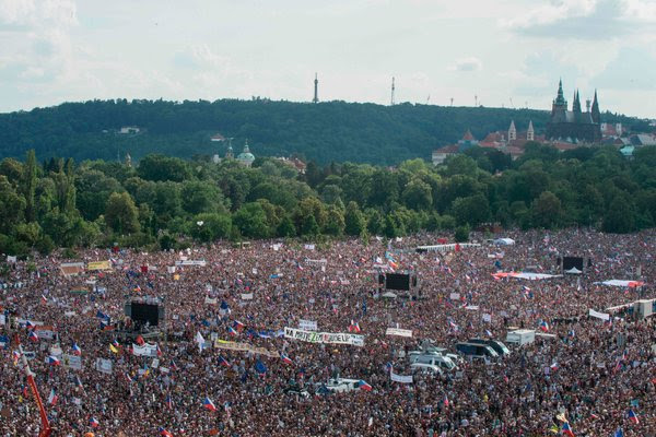Fotografia serii – Peste 200.000 de cehi au ieșit duminică pe străzile din Praga pentru a cere demisia premierului Andrej Babis. Michal Cizek/Agence France-Presse — Getty Images: