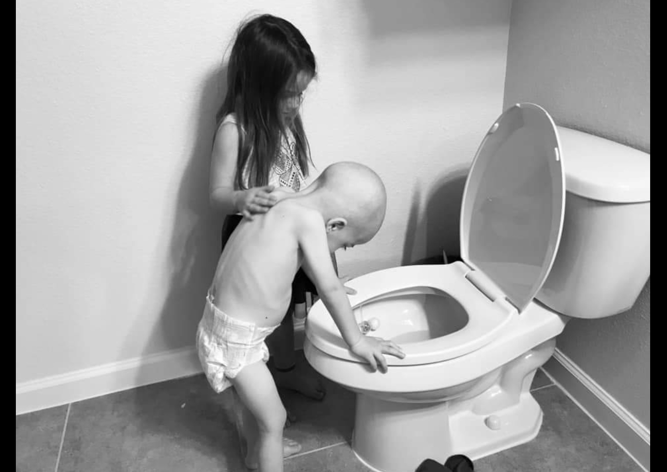 Fotografia dimineții – O mamă din SUA a facut publice fotografiile cu fiul său de patru ani, bolnav de leucemie, susținut de sora sa mai mare. Sursa: