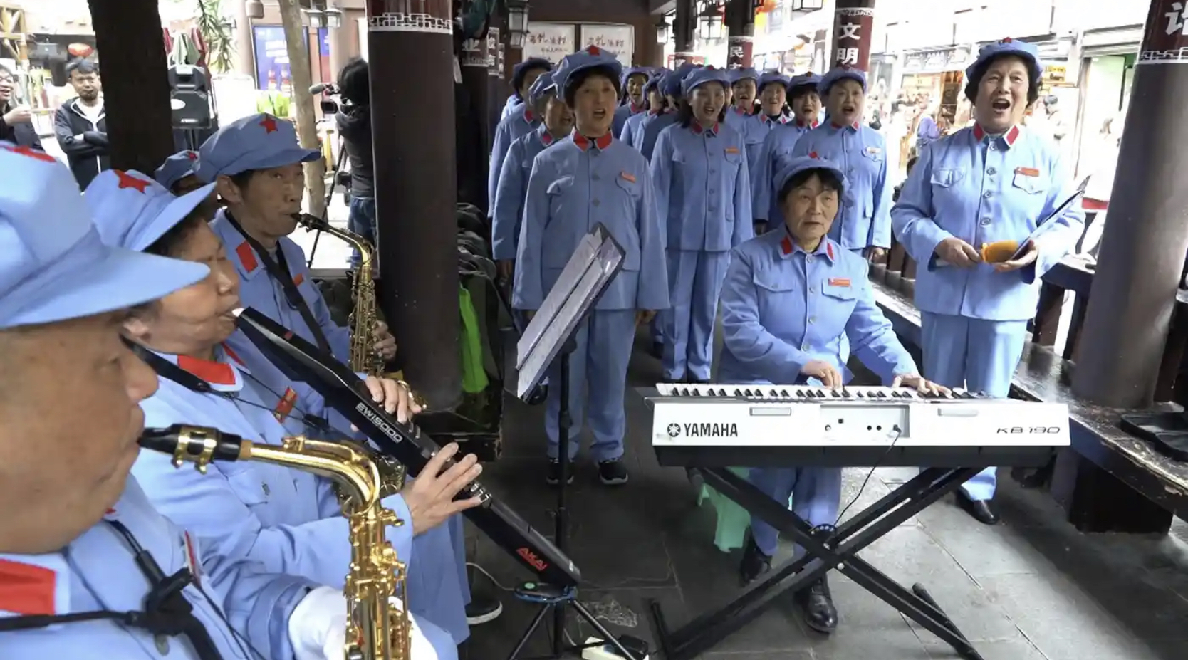 Pensionarii din Zunyi, China, s-au reunit pentru a cânta cântece revoluționare ale Armatei Roșii. Emily Wang/AP: