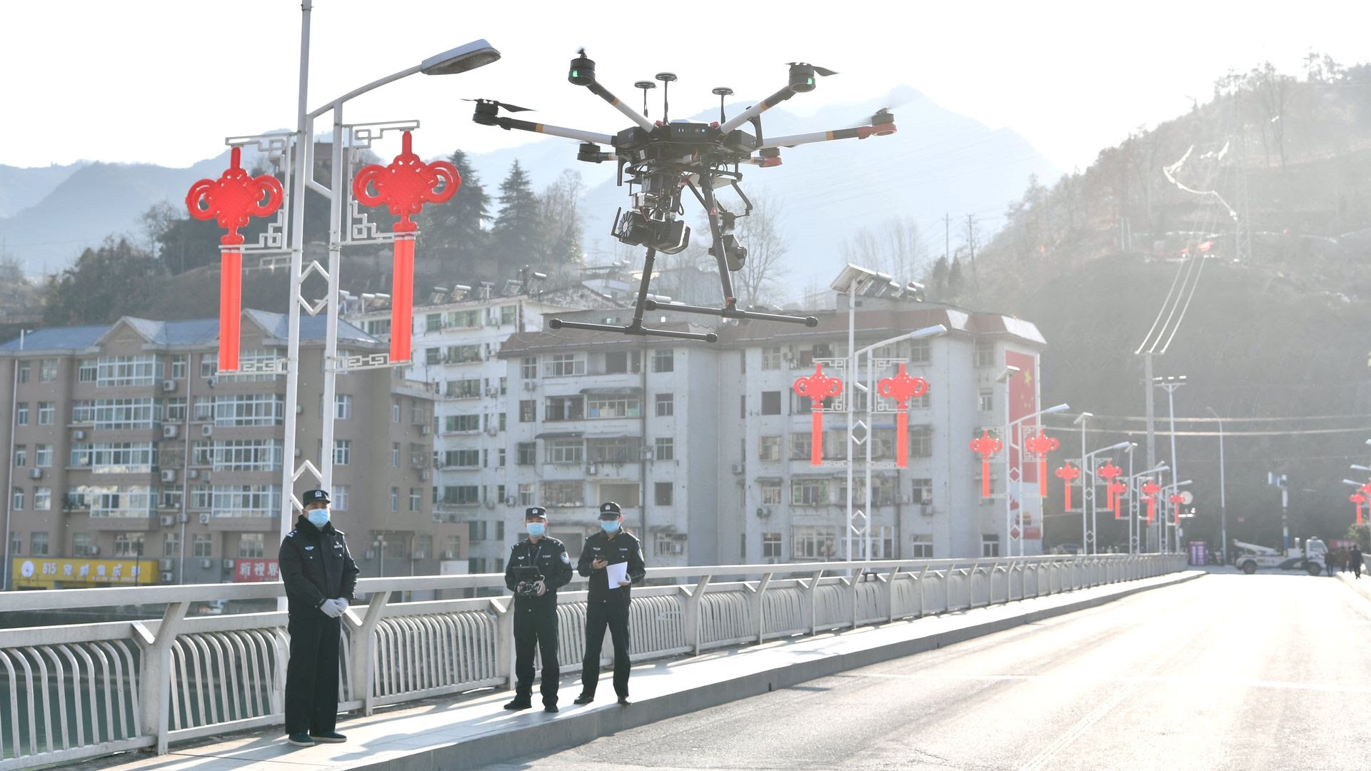 Fotografia dimineții – Poliția chineză din provincia Hubei operează o dronă care transmite informații pentru prevenirea răspândirii coronavirusului. China Daily via Reuters: