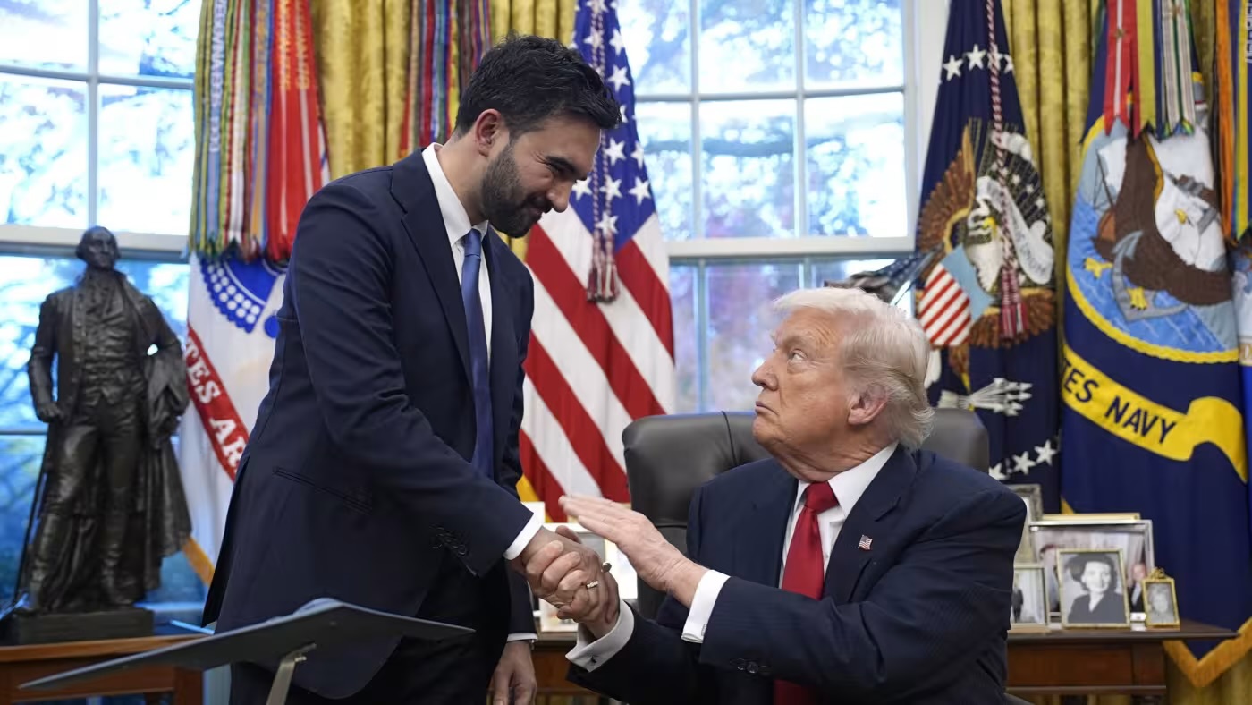 Fotografia dimineții – Strângerea de mână dintre Zohran Mamdani, primarul New York City, și președintele Donald Trump, la întâlnirea de la Casa Albă. Yuri Gripas/Pool/EPA/Shutterstock: