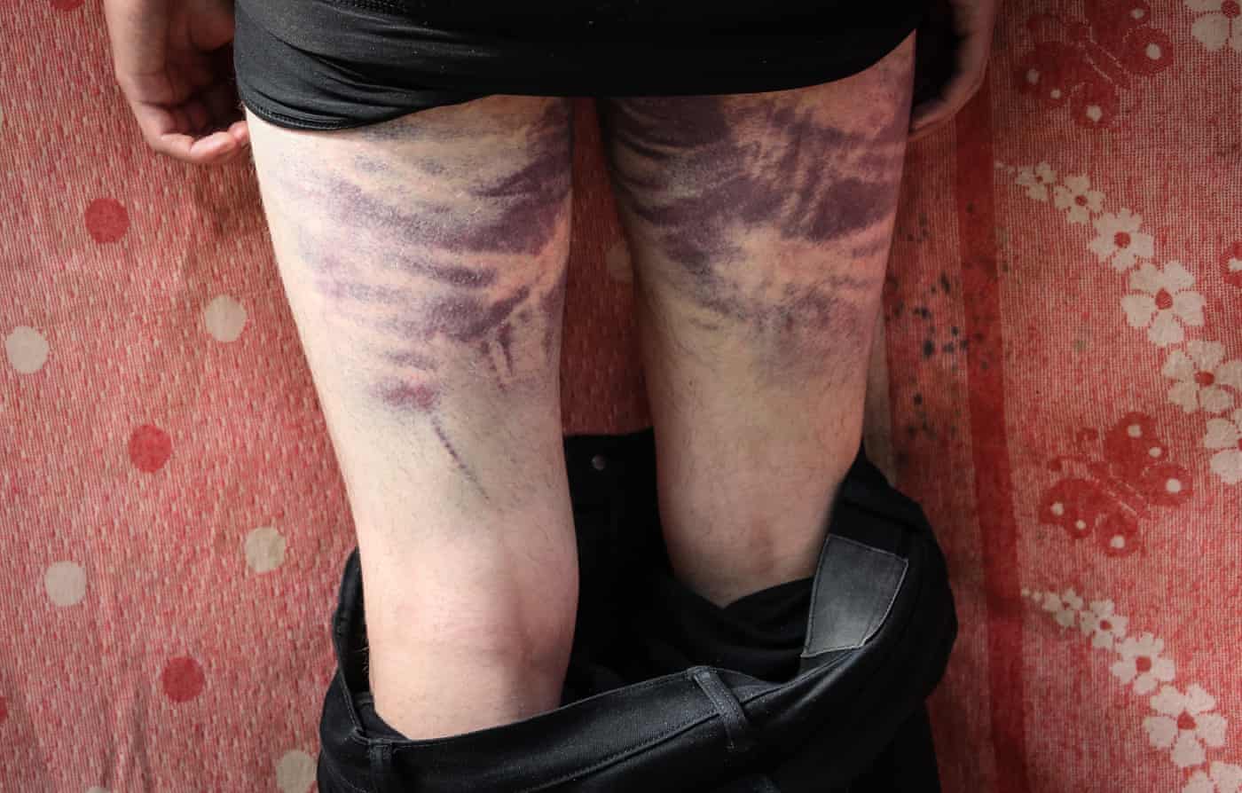 Fotografia serii – Vânătăile de pe picioarele unui protestatar din Minsk după ce a fost eliberat dintr-un centru de detenție. Tatyana Zenkovich/EPA: