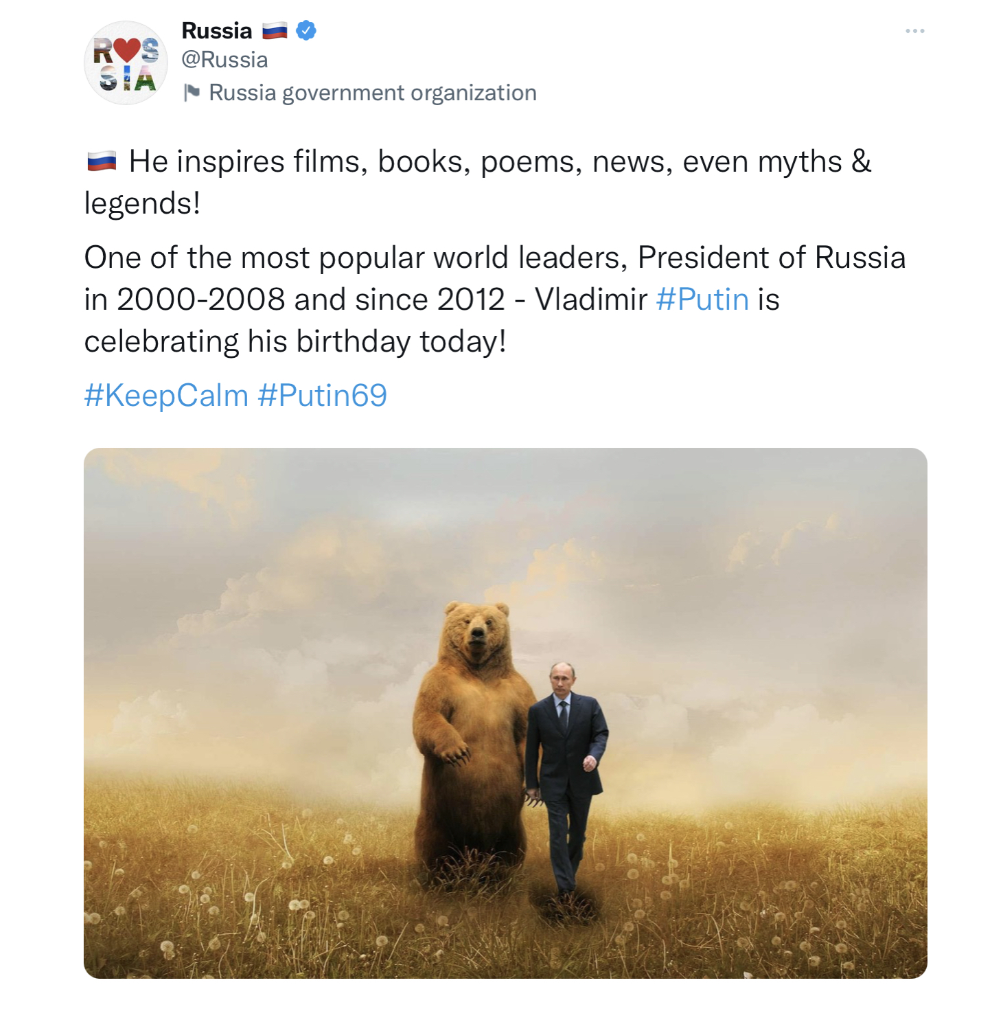 Fotografia dimineții – Mesajul postat pe un canal guvernamental de Twitter, de ziua președintelui Rusiei, Vladimir Putin: