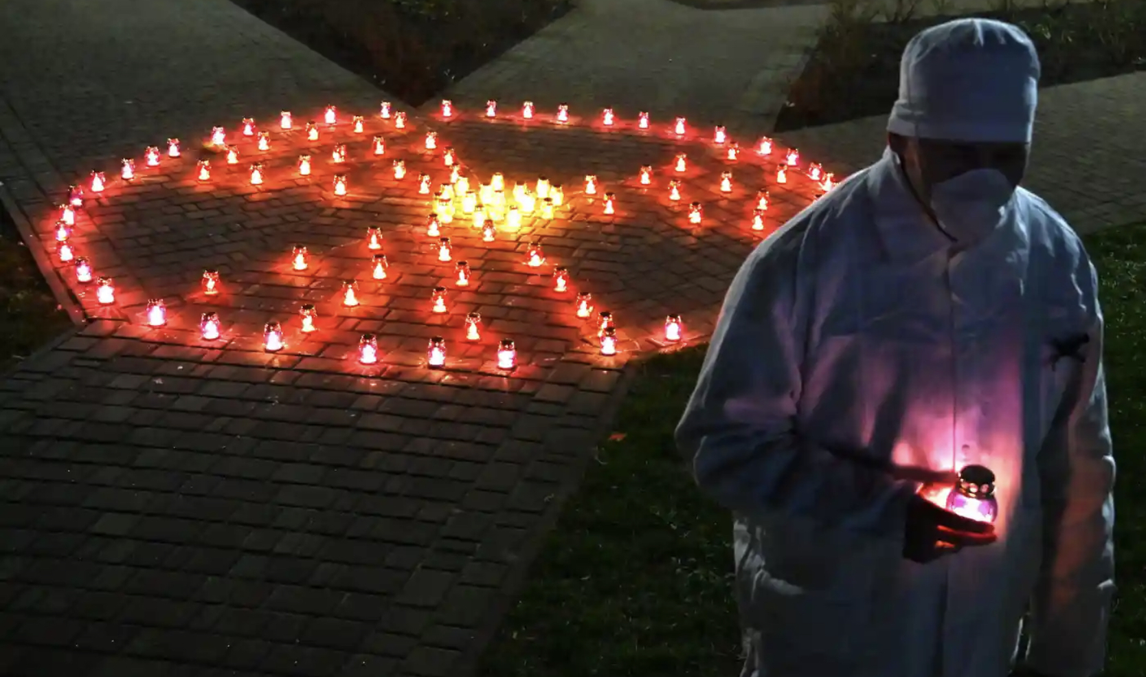 Fotografia dimineții – Semnul radioactivității, format din lumânări, la 35 de ani de la dezastrul nuclear de la Cernobîl. Sergei Supinsky/AFP/Getty Images: