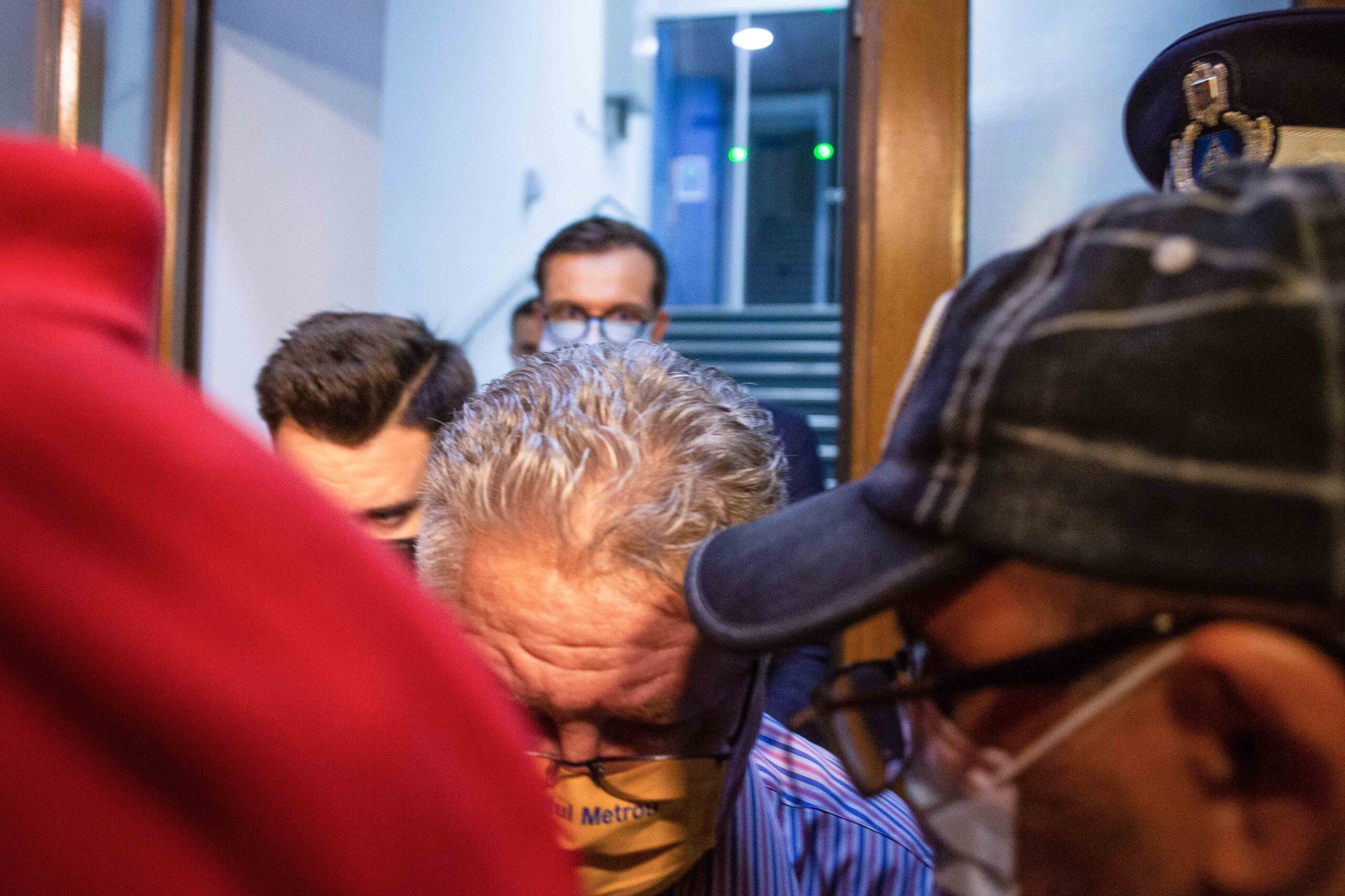 Fotografia dimineții – Ion Rădoi protejat de sindicaliști, aseară, la ieșirea de la DNA. Ilona Andrei, Inquam Photos: